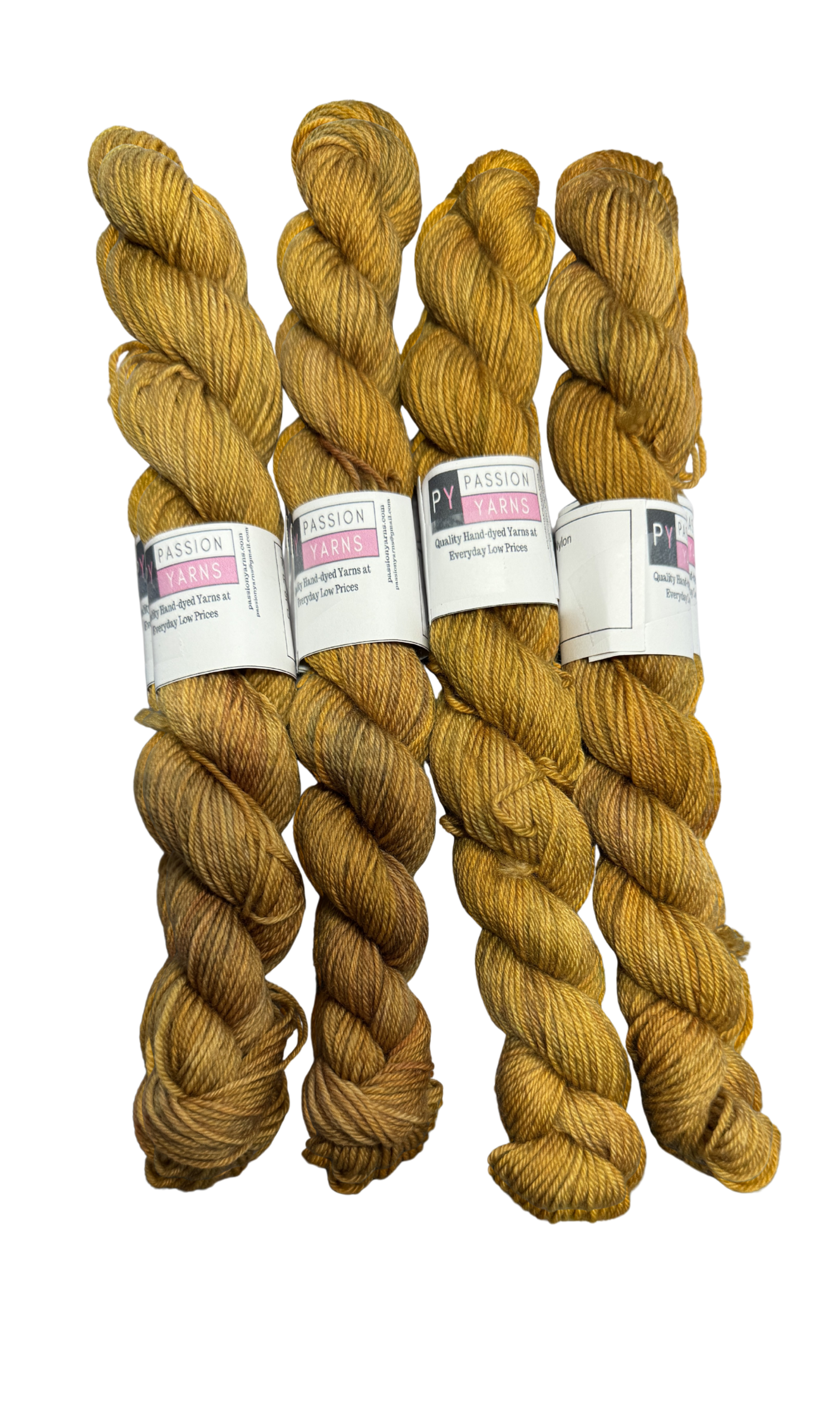 Our yarns are dyed in small batches which can result in variations between skeins and is common in hand-dyed yarns. Purchase enough yarn to ensure that variations are not noticeable in your finished projects. We do our best to portray our yarn colors accurately, but they can display differently on different monitors.