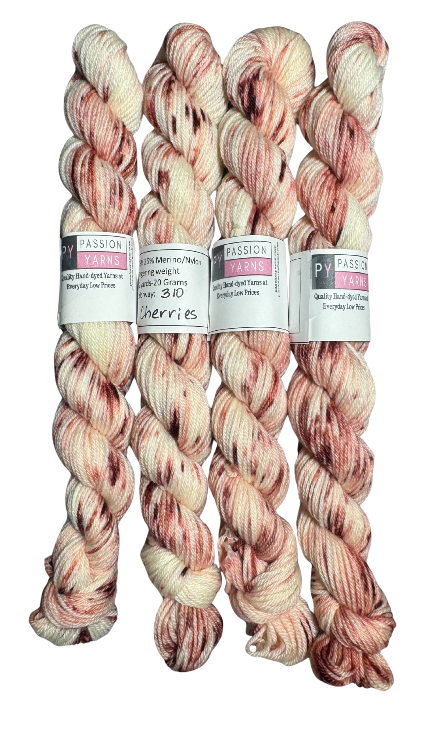 Our yarns are dyed in small batches which can result in variations between skeins and is common in hand-dyed yarns. Purchase enough yarn to ensure that variations are not noticeable in your finished projects. We do our best to portray our yarn colors accurately, but they can display differently on different monitors.
