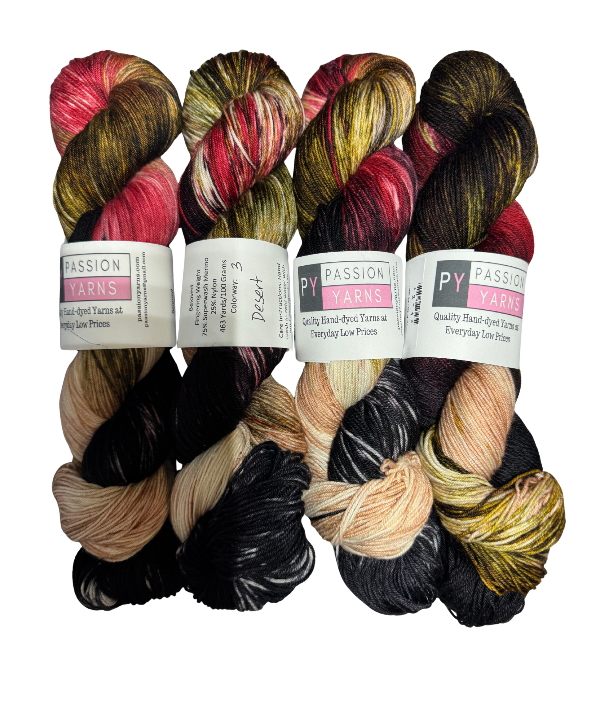 Self-Striping yarns are a combination of 4 colors in equal stripes when used to knit sock.