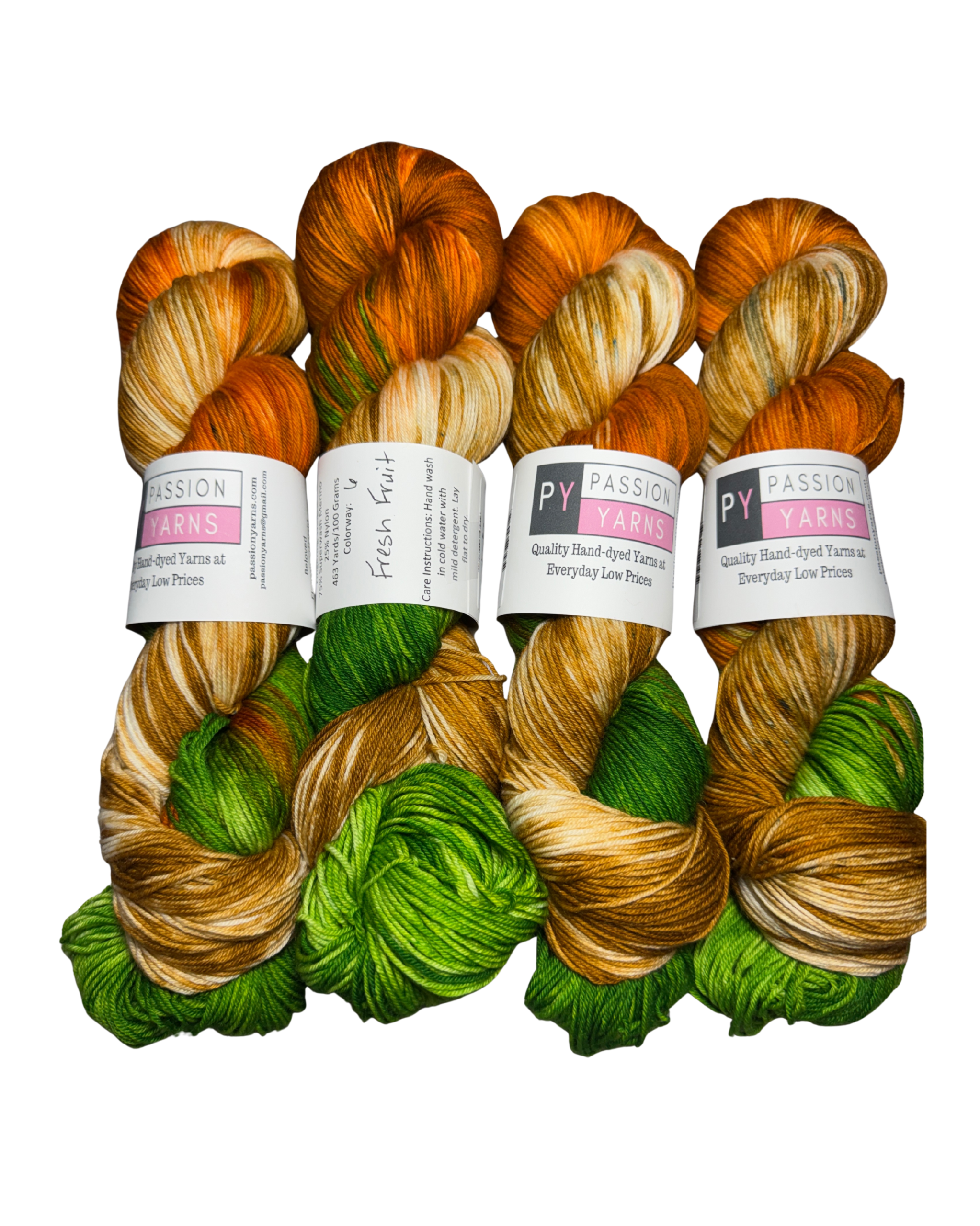Self-Striping yarns are a combination of 4 colors in equal stripes when used to knit sock.