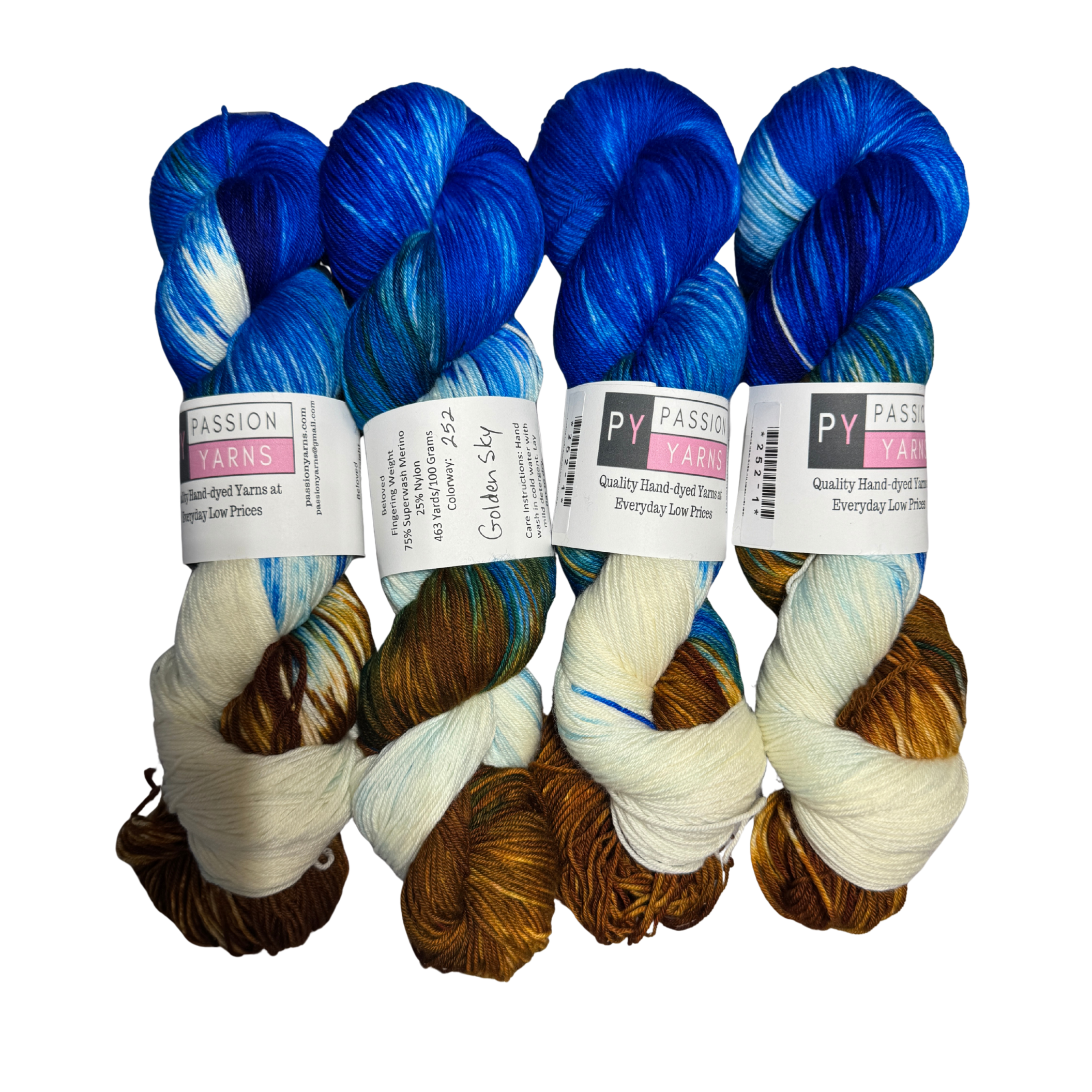Self-Striping yarns are a combination of 4 colors in equal stripes when used to knit sock.