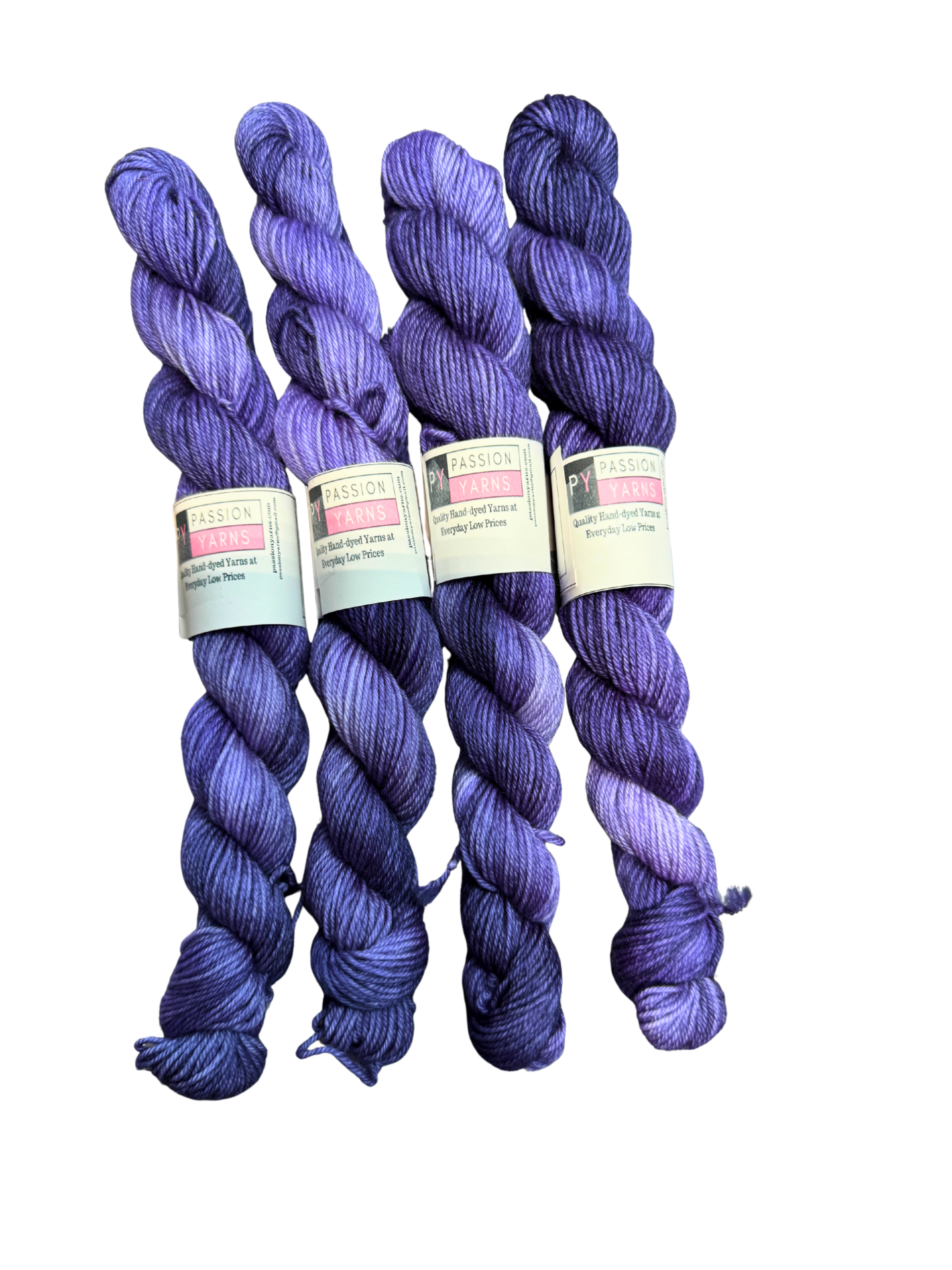 Our yarns are dyed in small batches which can result in variations between skeins and is common in hand-dyed yarns. Purchase enough yarn to ensure that variations are not noticeable in your finished projects. We do our best to portray our yarn colors accurately, but they can display differently on different monitors.