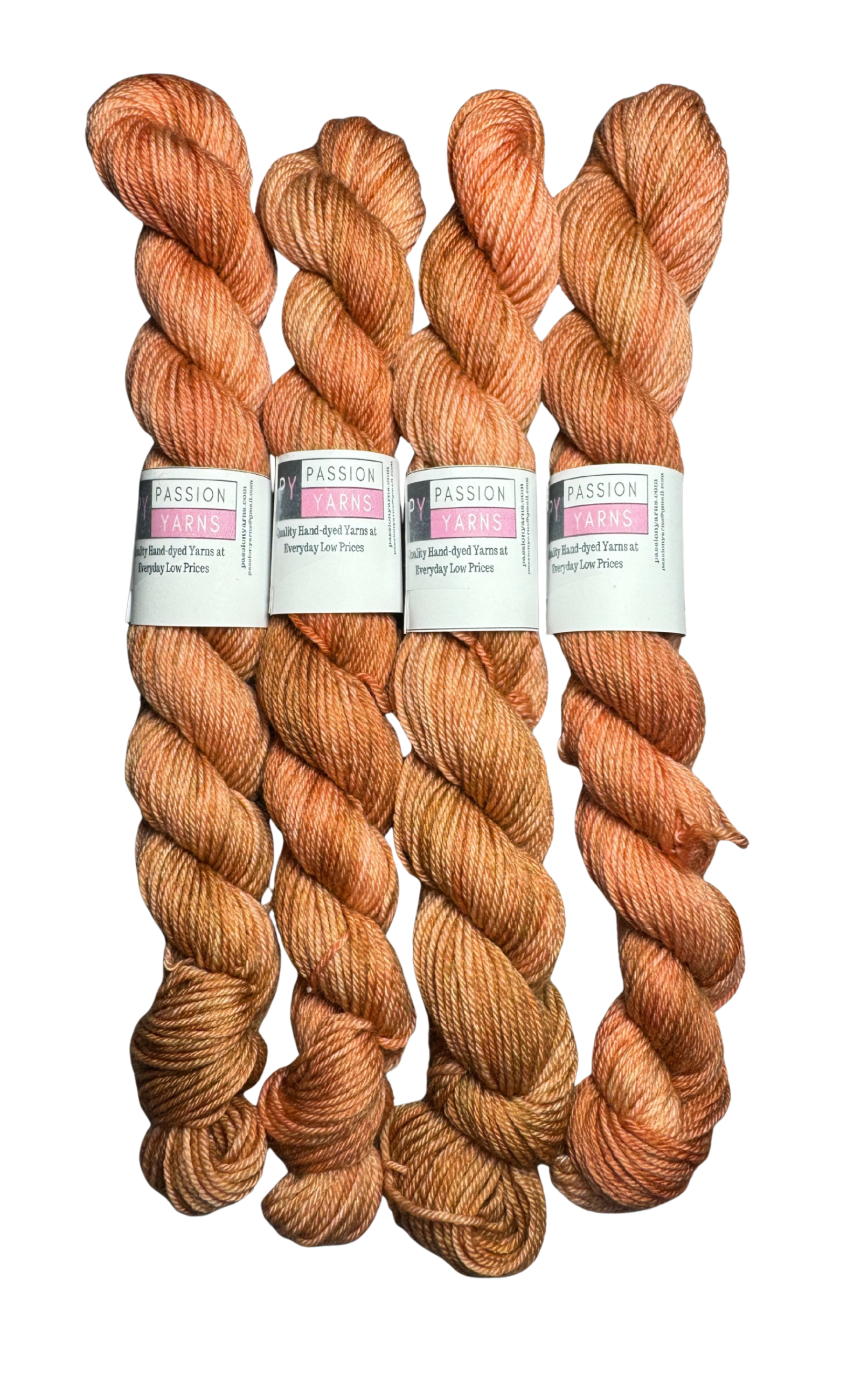 Our yarns are dyed in small batches which can result in variations between skeins and is common in hand-dyed yarns. Purchase enough yarn to ensure that variations are not noticeable in your finished projects. We do our best to portray our yarn colors accurately, but they can display differently on different monitors.