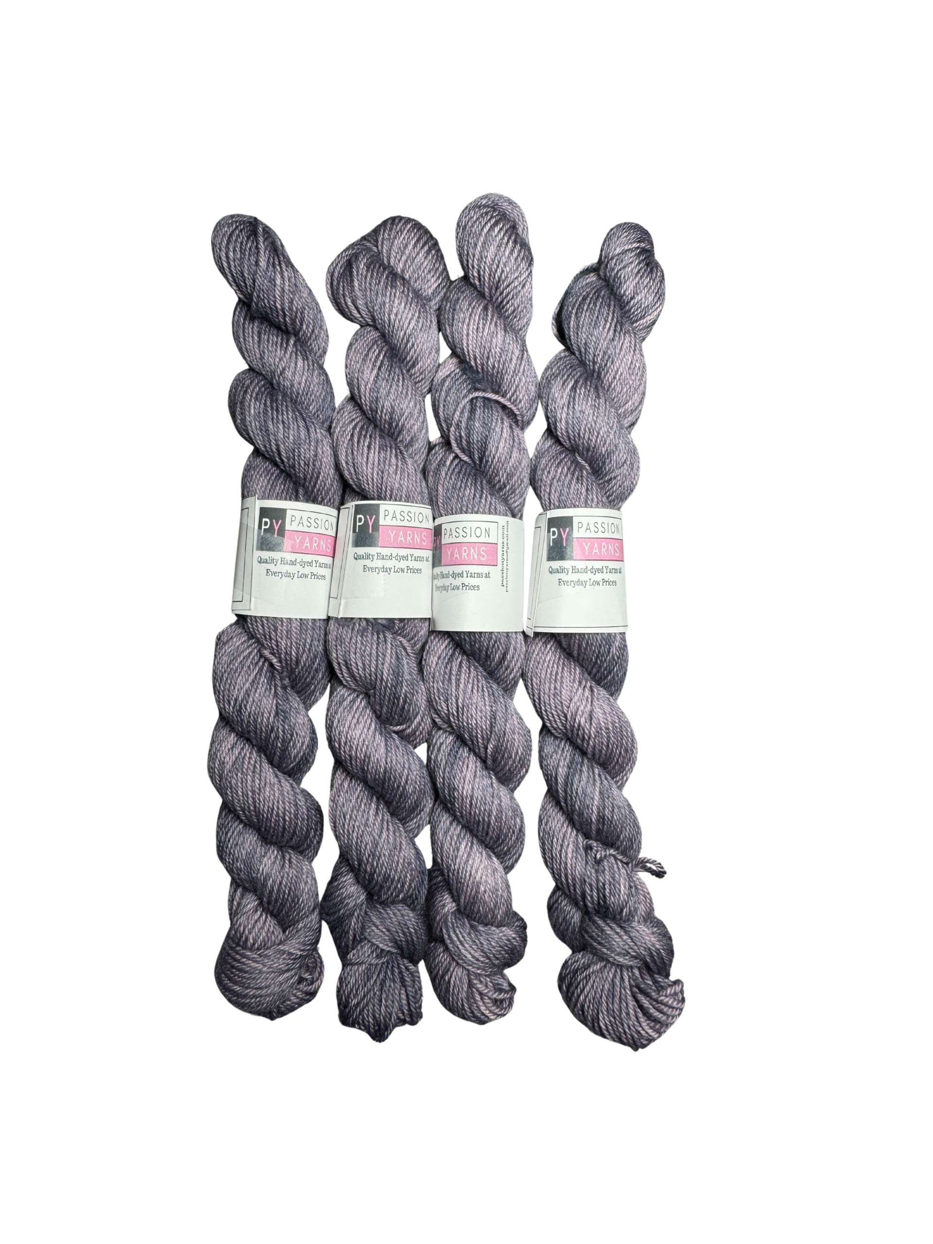 Our yarns are dyed in small batches which can result in variations between skeins and is common in hand-dyed yarns. Purchase enough yarn to ensure that variations are not noticeable in your finished projects. We do our best to portray our yarn colors accurately, but they can display differently on different monitors.