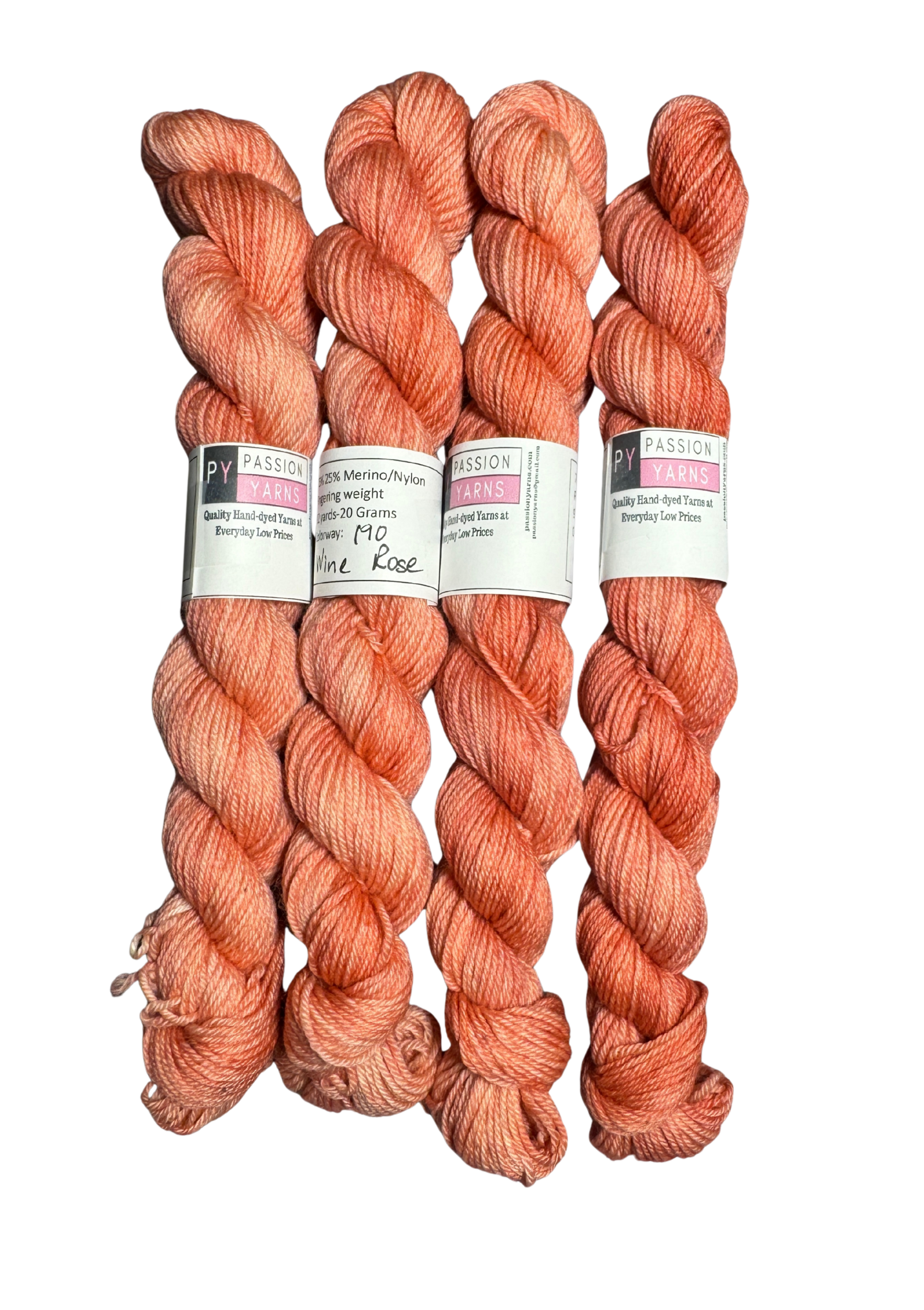 Our yarns are dyed in small batches which can result in variations between skeins and is common in hand-dyed yarns. Purchase enough yarn to ensure that variations are not noticeable in your finished projects. We do our best to portray our yarn colors accurately, but they can display differently on different monitors.